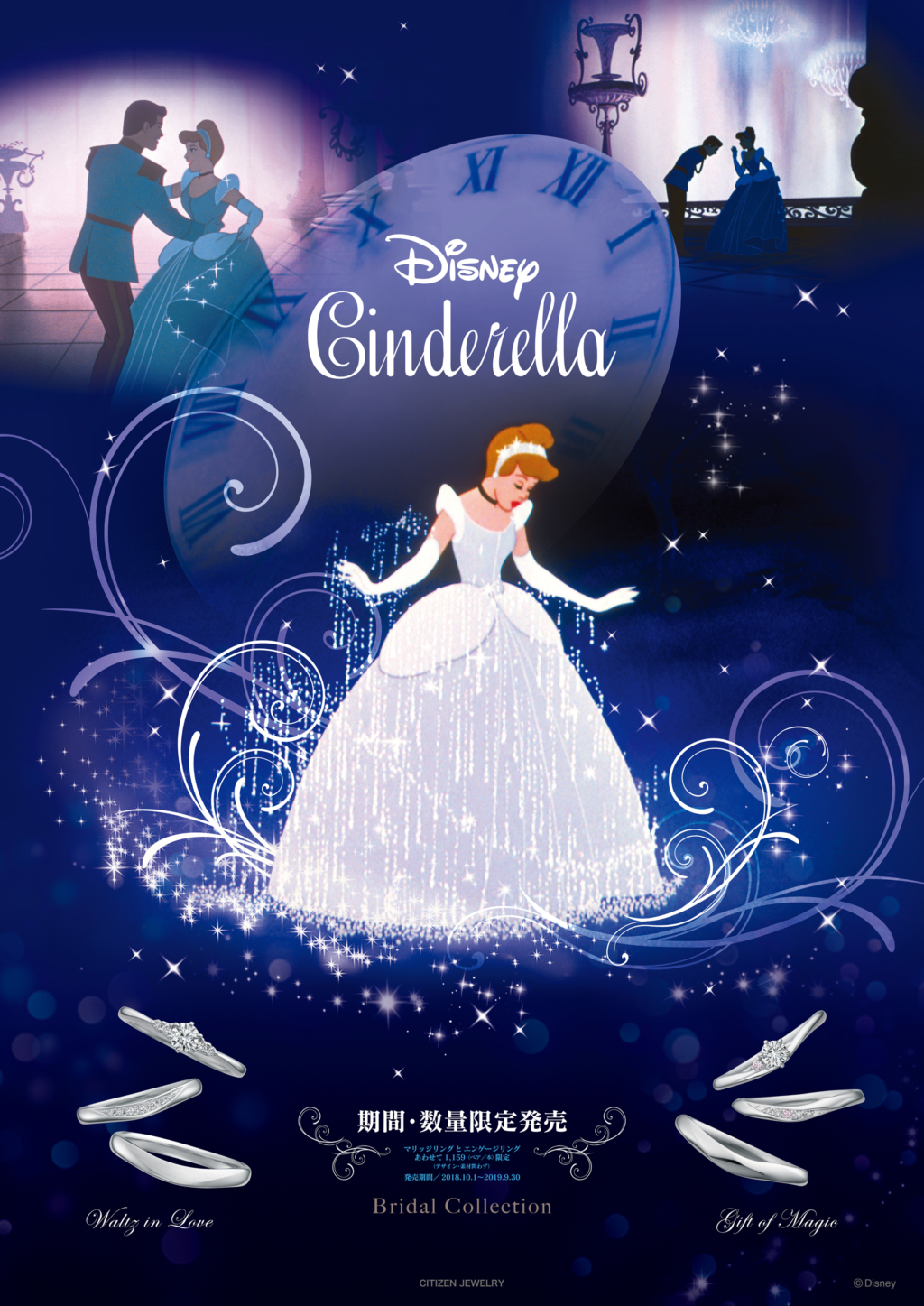CITIZENにより、ディズニーの婚約指輪・結婚指輪のブライダルコレクション“Disney Cinderella”が登場しました。