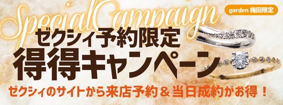 関西最大級の品揃えのgarden梅田で楽しく指輪選びをしながらお得に結婚指輪と婚約指輪を揃えよう♪ - 開催期間: