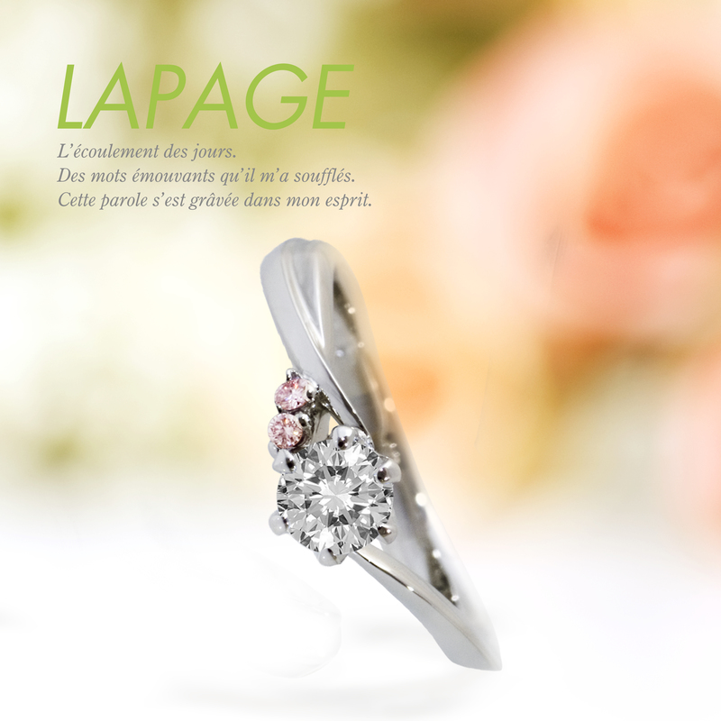 花の名前をリングに冠したセットリングのコレクション。それぞれの花の個性をダイヤの輝きと曲線の美しさで表現しています。祝福の気持ちを表すには花束を、大切な人への想いを伝えるには一輪の花を。貴方だけの素敵なメッセージを届けます。フルールコレクションはセットリングの世界観が他にはありません。重ねたときにあえて空間が空くようにデザインされていてLAPAGE以外のブランドでは表現できないセットリングをあなたに。
