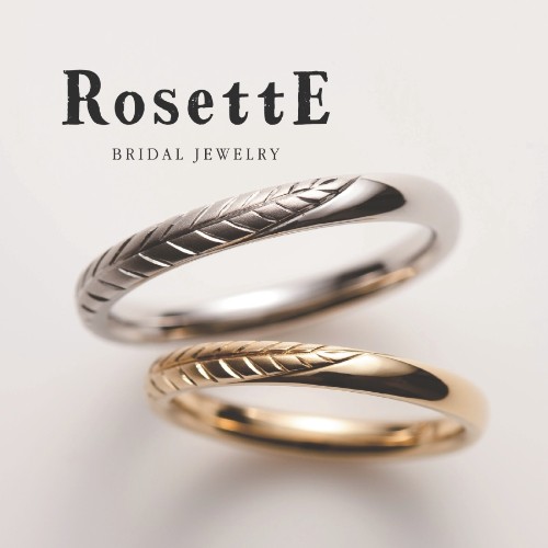 イングリッシュガーデンをテーマにした、クラシカル(アンティーク調)なデザインが魅力的です。愛らしいブランド名には、大地から芽吹き丸く重なり合う葉のように、「幾重にも尊敬と愛を贈りあう」という意味が込められています。結婚指輪のモチーフ一つひとつに冠されているのが、「小枝」「湖」など自然界をモチーフにした名前。それぞれのデザインに秘められた物語が、ふたりのラブストーリーをよりロマンティックに彩ります。